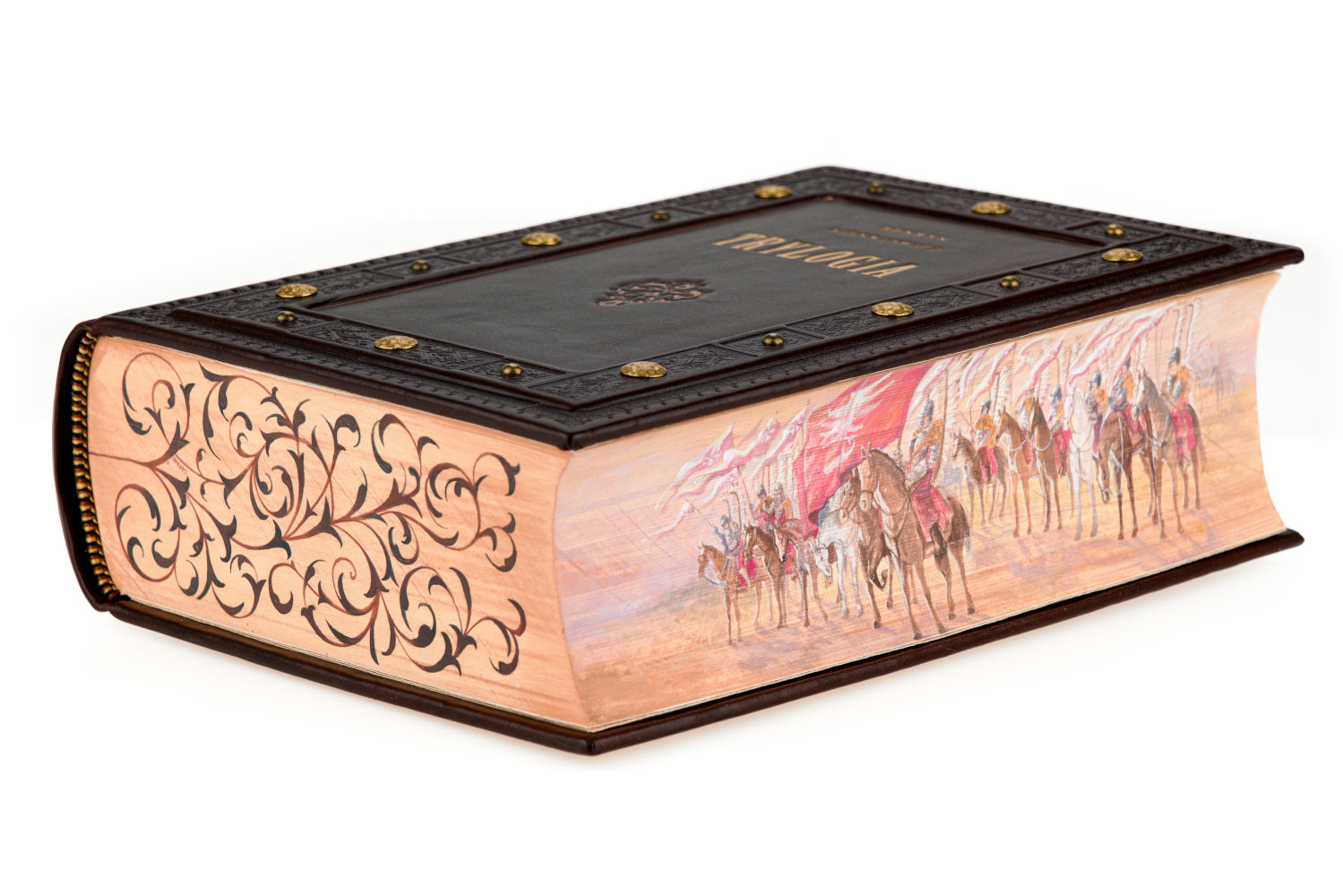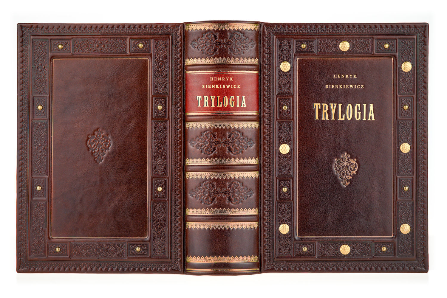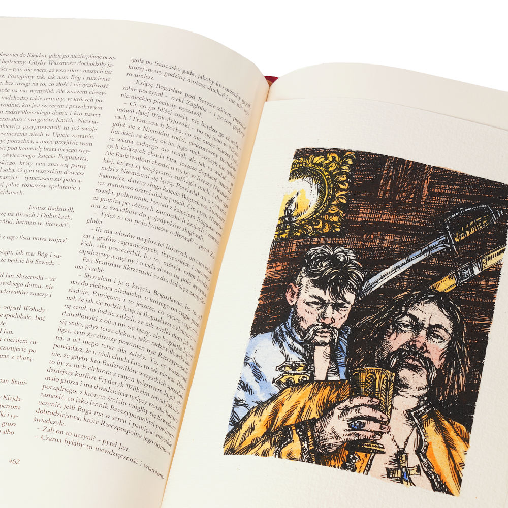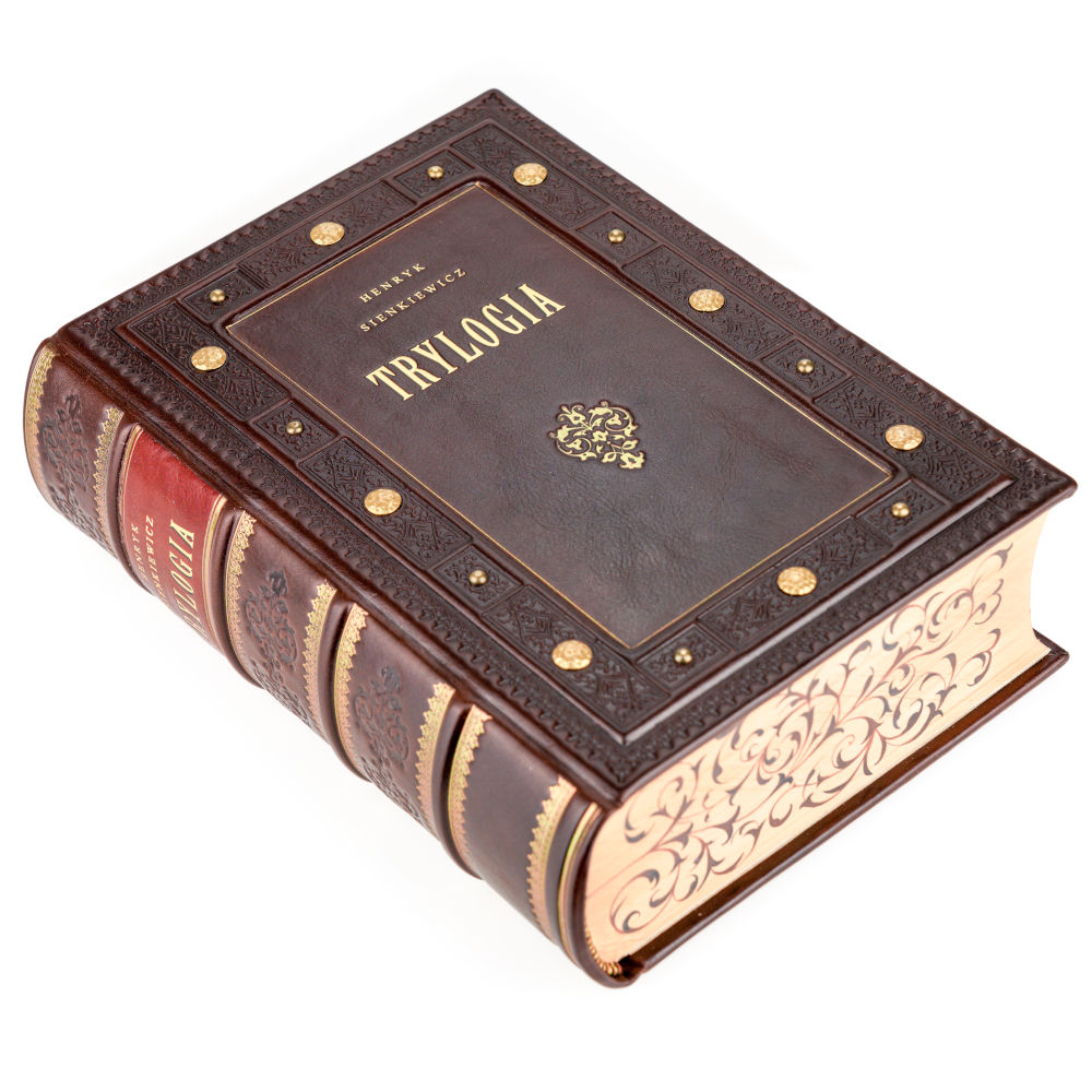Nie trzeba zapewne nikogo przekonywać, jak istotne miejsce w literaturze polskiej zajmuje Trylogia Henryka Sienkiewicza. Dla podkreślenia wagi i, niewątpliwie, monumentalności dzieła, zdecydowaliśmy się wydać ją w jednym, okazałym tomie. Wydrukowaliśmy je na doskonałym, bezdrzewnym papierze, który się nie starzeje. Tekst księgi zdobią winiety i ornamenty barokowe oraz inicjały z tej samej epoki. Księgę ilustrują wykonane na papierze czerpanym, ręcznie malowane grafiki. Księga jest ręcznie zszywana i pieczołowicie oprawiana w skórę przez mistrzów sztuki introligatorskiej. Brzegi księgi zdobią ręcznie wykonywane malowidła, wykonane przez znakomitych artystów.