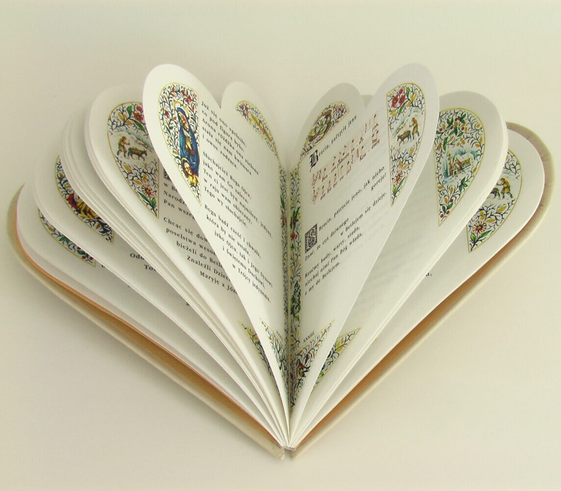Wyjątkowe emocje związane z okresem świątecznym zostały podkreślone unikatowym projektem. Książka ma kształt serca, a jej wnętrze skrywa prawdziwe bogactwo wizualne: wszystkie strony zdobią barwne bordiury, wprowadzające w bożonarodzeniowy nastrój. Kształtem nawiązuje do historycznych ksiąg, takich jak średniowieczne graduały i modlitewniki, stanowiąc most między przeszłością a współczesną celebracją.